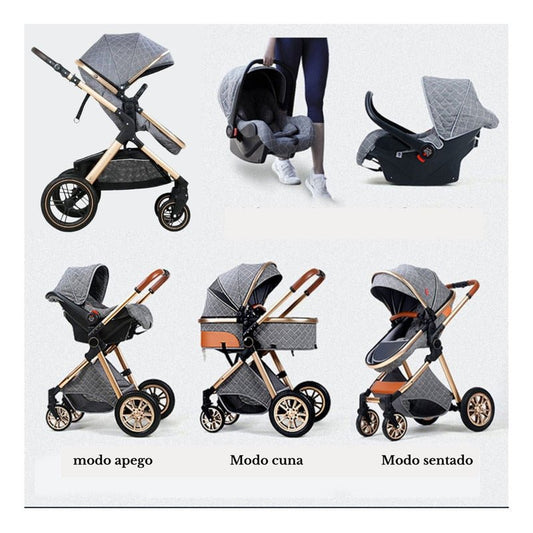 Coche Cuna Con Silla Nido Tantor Accesorios + Bolso - Negro