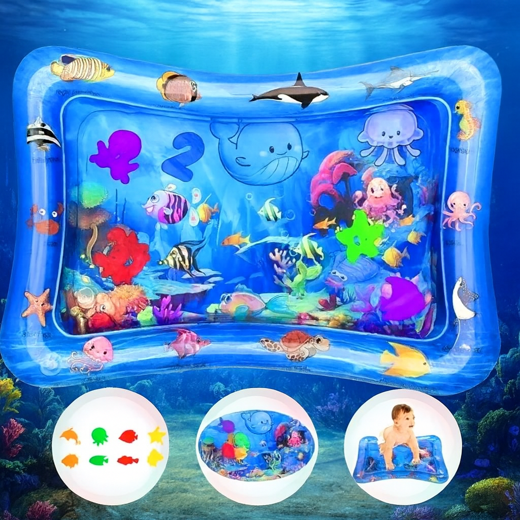 💧 Alfombra de agua Tummy Time: fortalece la musculatura del cuello y la espalda mientras el bebé disfruta de un mundo acuático de colores y movimiento.