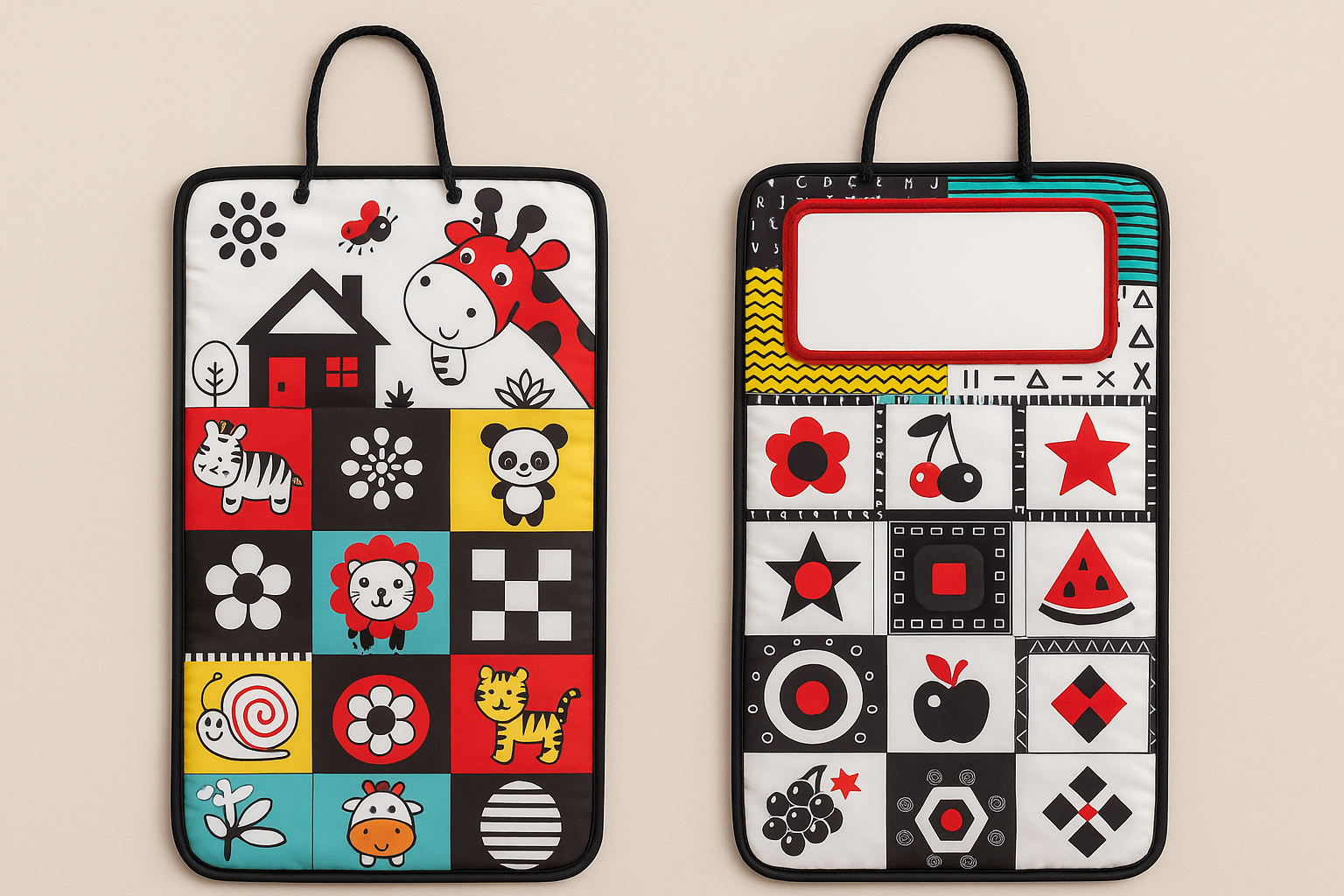 📖 Libro de tela con diseño y textura: colores, formas y diferentes materiales que invitan a explorar con las manos y la vista.