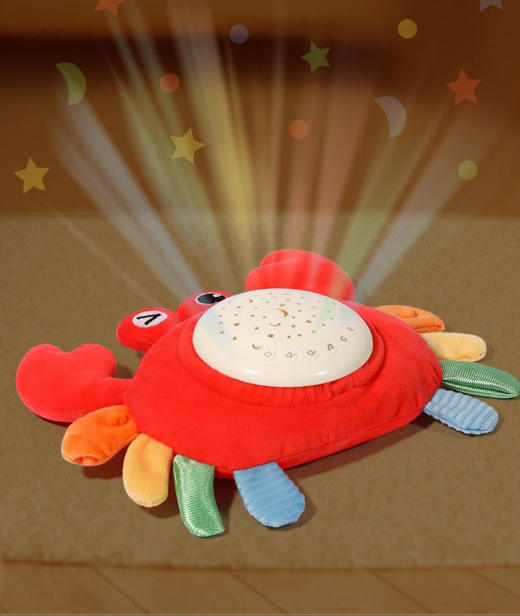 Convierte la hora de dormir en un momento de paz y tranquilidad para tu bebé con este adorable cangrejo de peluche multifuncional. Diseñado para acompañar a los pequeños en sus noches, combina música relajante, suaves proyecciones de estrellas y una cálida luz nocturna que brinda seguridad y comodidad.