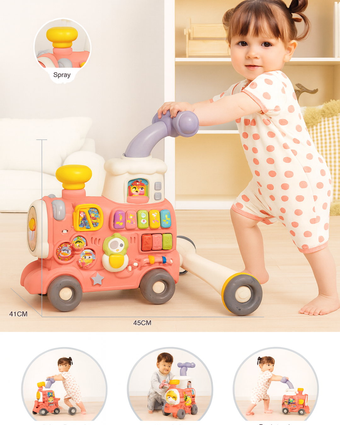 La Caminadora Correpasillo Tren 3 en 1 es el compañero perfecto para acompañar a tu bebé en sus primeros pasos. Diseñada con colores alegres y múltiples actividades interactivas, estimula la curiosidad, el equilibrio y la coordinación mientras el pequeño se divierte jugando y explorando.