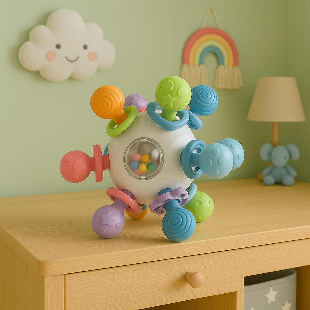 La Pelota Mordillo Sonajero Didáctico Multicolor es mucho más que un juguete: es un aliado en el desarrollo sensorial y motor de tu bebé. Con un diseño práctico, seguro y lleno de estímulos, esta pelota combina sonajero y mordedor para acompañar cada etapa de descubrimiento.